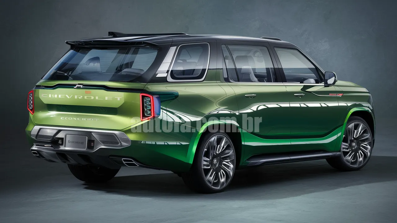A New Electric Chevrolet Veraneio It is designed with the help of computer graphics software, allowing a contemporary view of its characteristics. The green paintwork, with chrome details, gives it a sophisticated and nostalgic look, evoking the aura of classic vans from the past.