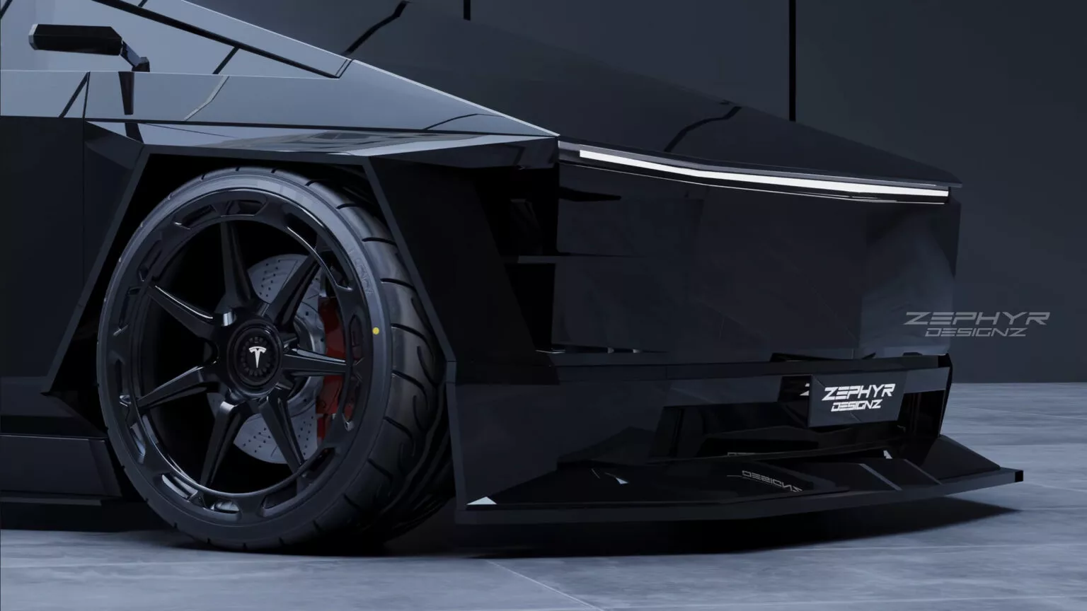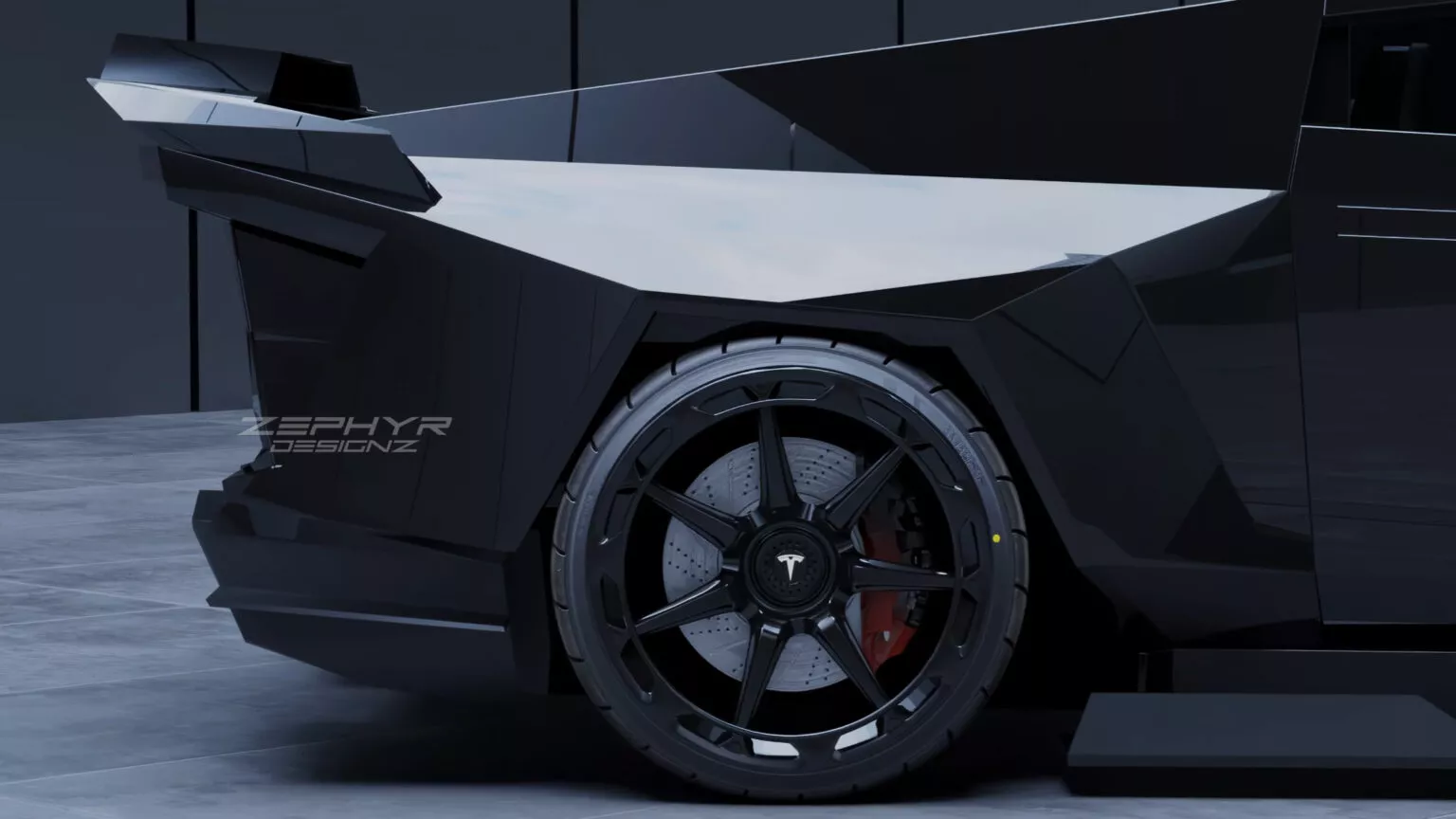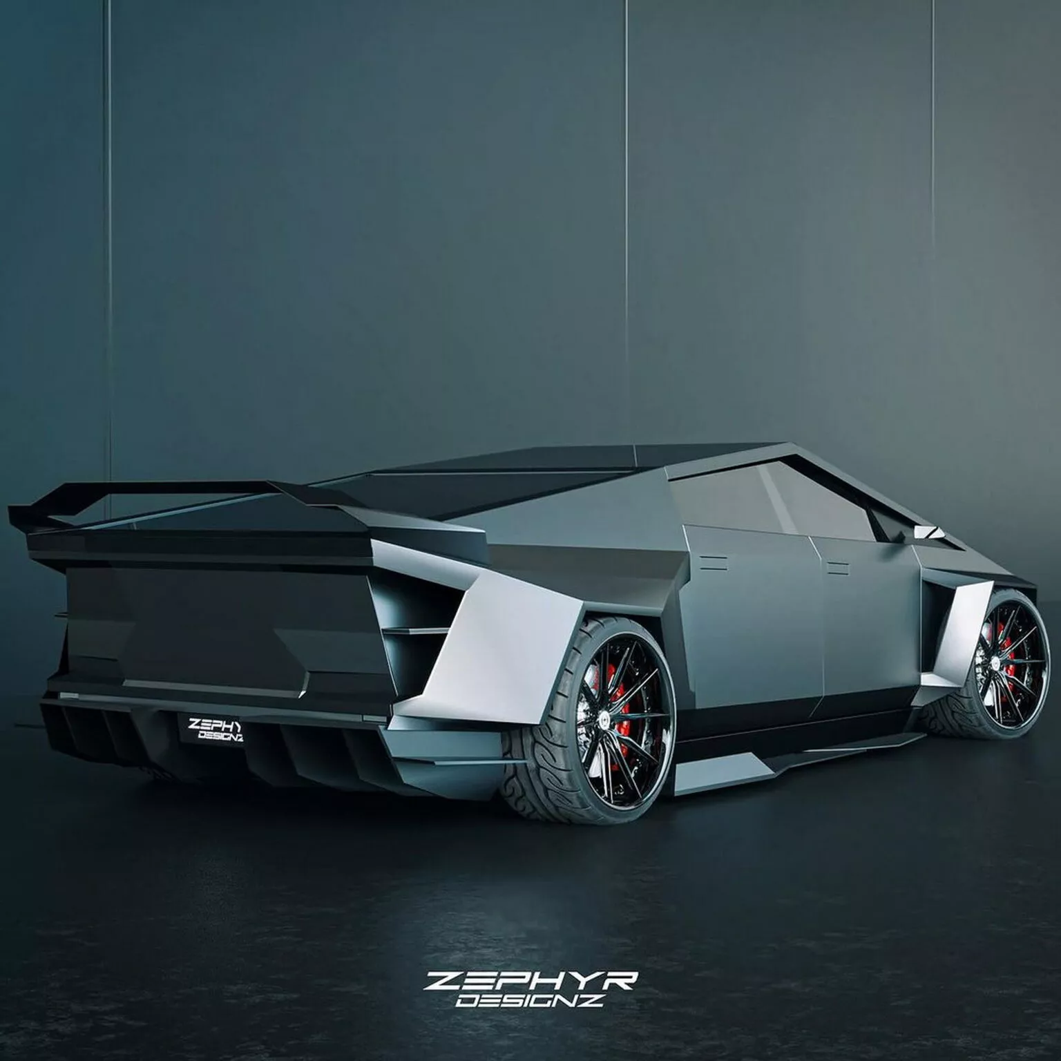 The first body kit wasn't enough for Zephyr Designz, which shared a slightly redesigned version with a more aggressive stance. The heavily modified Cybertruck has been repainted red and given a new set of alloy wheels, while the diffuser has been removed, giving us a hint of what lies beneath the surface.