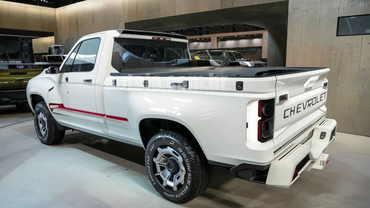 Los laterales del nuevo Chevrolet D20 Conquest son igualmente impresionantes. Las franjas rojas que contrastan con la pintura blanca le dan un aspecto deportivo y dinámico, mientras que las grandes llantas de aleación y los espejos aerodinámicos añaden un toque de sofisticación. Las líneas fluidas y bien definidas contribuyen a una aerodinámica optimizada, garantizando no sólo una apariencia atractiva, sino también un rendimiento excepcional en términos de eficiencia y estabilidad.