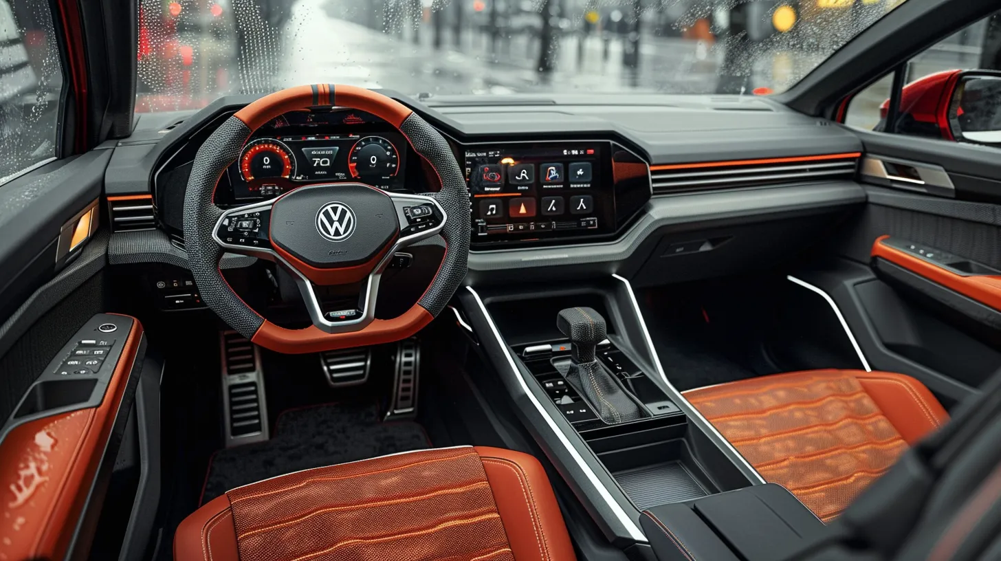 Frente: La parte delantera del Volkswagen Quantun Sport 2024 es una fusión de elegancia y agresividad. La parrilla delantera, inspirada en el modelo clásico, se ha reinventado para brindar un aspecto moderno e imponente. Los faros cónicos y los detalles en negro y rojo añaden una dosis extra de deportividad, haciéndolo destacar entre la multitud.