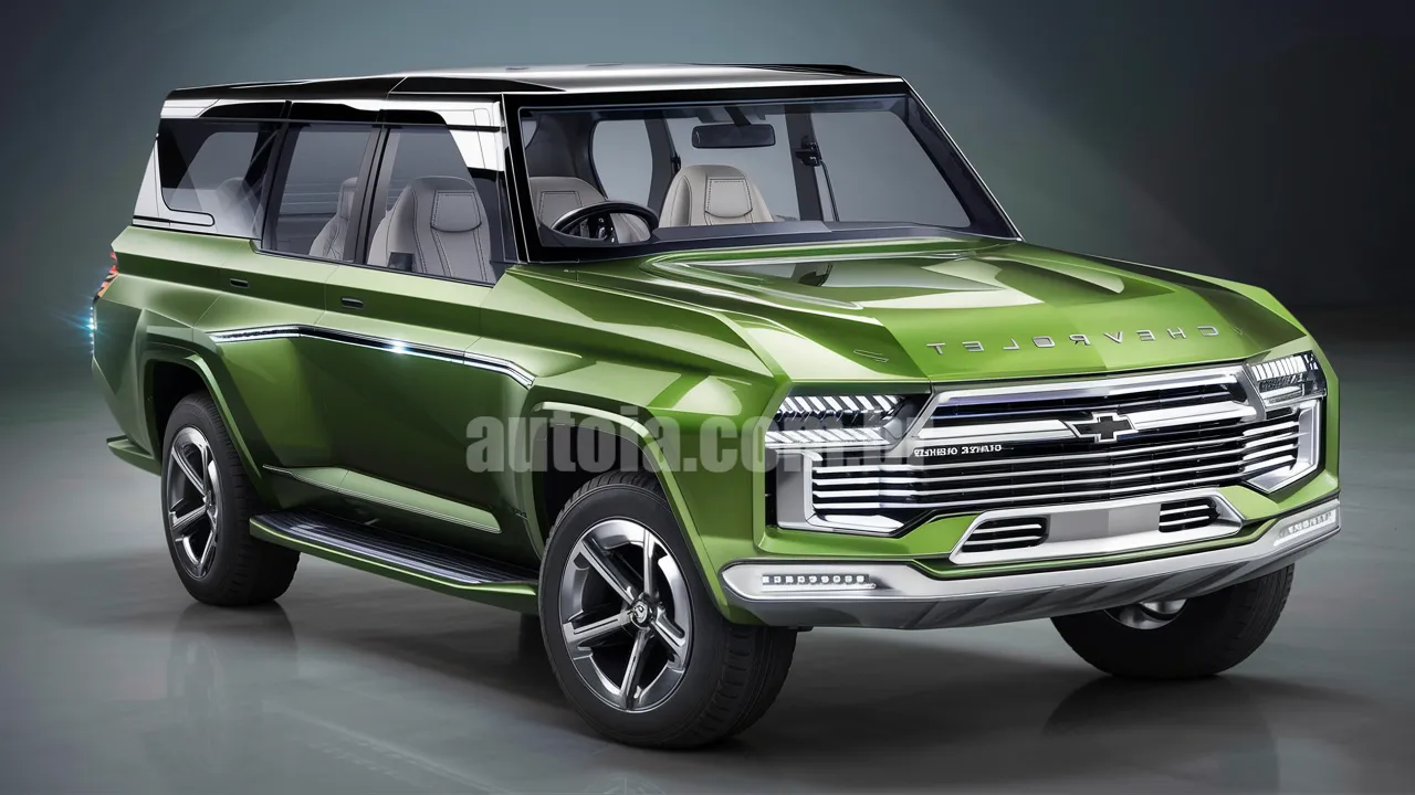 A Nova Chevrolet Veraneio Elétrica é concebida com a ajuda de softwares de computação gráfica, permitindo uma visão contemporânea das suas características. A pintura verde, com detalhes em cromado, confere-lhe um ar sofisticado e nostálgico, evocando a aura das clássicas carrinhas do passado.