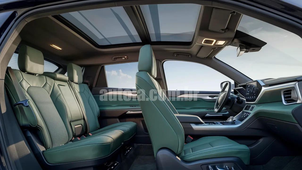 No interior, a Nova Chevrolet Veraneio Elétrica oferece um ambiente espaçoso e confortável, com acabamentos refinados e tecnologia de ponta. Os bancos revestidos em couro, o sistema de entretenimento de última geração e os controles intuitivos destacam-se, proporcionando uma experiência luxuosa para motorista e passageiros.